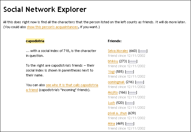 The Social Network Explorer was the first of the "external apps" that GNE built (and arguably, thus, the first GASP development). It allowed you to see who was friends with who.