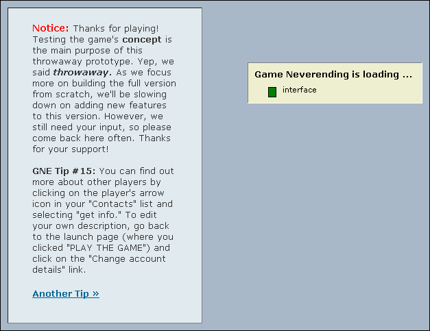 The game took a while to load. While it did, you were treated to some gameplay tips (something i'd like to see reappear in the real game - loading is so boring now ;).
